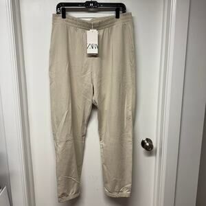 Zara Womens Cream Bone Sweatpant Joggers Size XL Extra Large 100% Cotton New