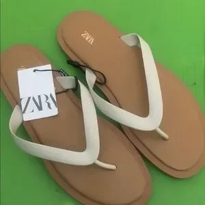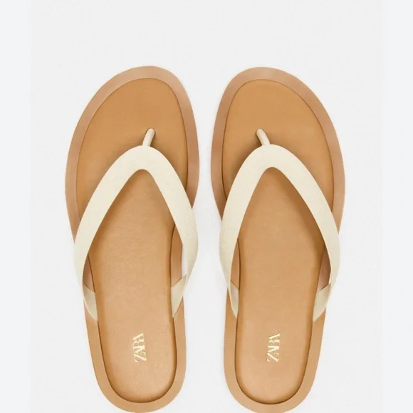 Step into comfort with Zara's stylish cream sandals. Perfect for any casual outing.