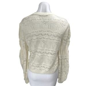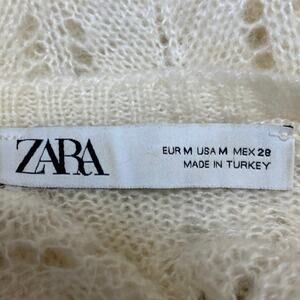 Zara Women's Cream White Lace Crochet Long Sleeve Crewneck Sheer Sweater Top M