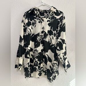 Stylish Zara shirt with bold black and white floral pattern. Perfect for versatile styling.