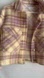 Chic utility jacket with a cream and purple plaid pattern. Features front pockets and button closure. Perfect for layering.