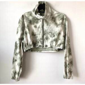 Zara Womens Cropped Jacket Green Camo Tie Dye Size M