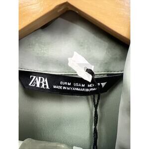 Upgrade your wardrobe with this stylish Zara cropped jacket in a green camo tie-dye pattern. Made of lightweight nylon material with a polyester lining, this jacket is perfect for travel, casual wear, or workwear. It features a full zip closure, long sleeves, and a short jacket/coat length, making it a great choice for the summer, fall, or spring seasons.