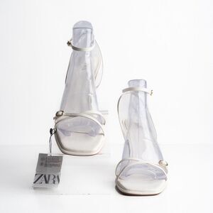 Zara Crossed Strap Heel Sandal White 2337/110Sz US 9 EU 40