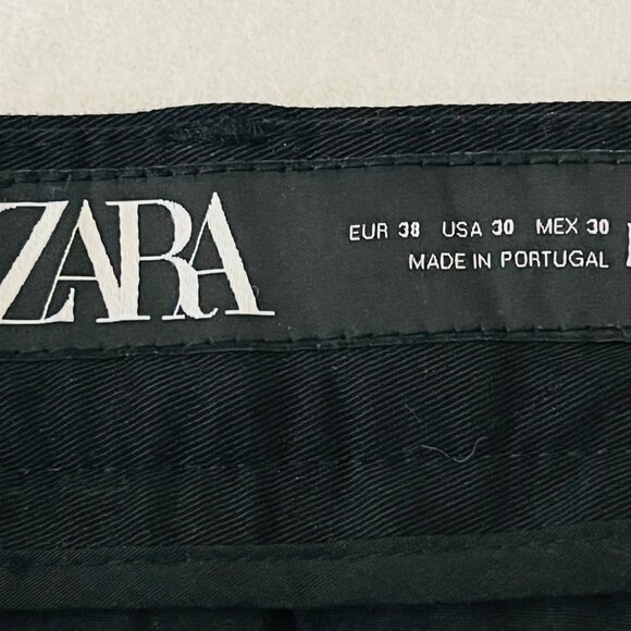 Zara Women's Dark Navy Stretch Pants Size 30 Straight Leg Pleated High Rise NWOT