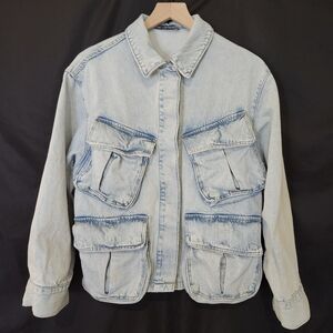 Zara Women's Denim Jacket Size XS Light Wash Chunky Pockets Oversized Grunge