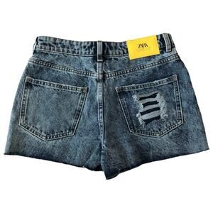 Zara Womens Denim Jeans Shorts Size 2 High Rise Distressed Exposed Button Fly