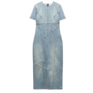 Zara Womens Denim Midi Jean Dress Size S Blue Short Sleeve Slit 7227/082 NWOT