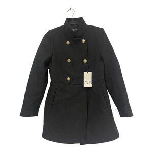 Zara Womens Double Breasted Coat Small Long Sleeve Black Wool Blend 9762/141 NWT