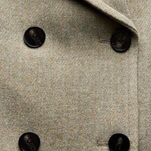 Featuring a classic double-breasted design and crafted from a cozy wool blend. Its elegant notched lapel collar adds a touch of sophistication, making it a versatile addition to your outerwear collection. The perfect fall jacket to go with your jeans. NWOT. Never worn.