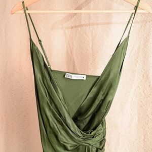 emerald green, slip dress, evening wear, sleek fabric, minimalist style, flowy, elegant, party dress, lustrous finish