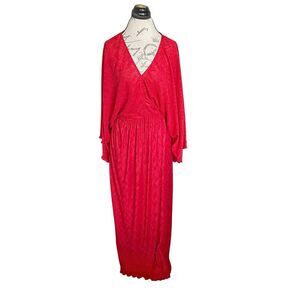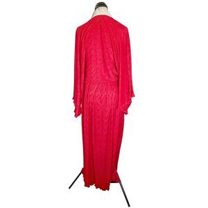Zara Women's Dress Size Medium V-Neck Kimono Sleeve Ruched A-Line Red Long Maxi, Boho Evening Gown Flowy Boho chic , Romantic Draped Elegance Soft flow, Timeless Red, Fairycore