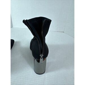 Zara Women's EU 40/US 9 Mirrored Chunky Heel Sock Bootie Zip Pullon Black EUC