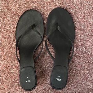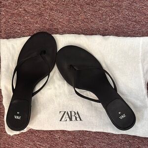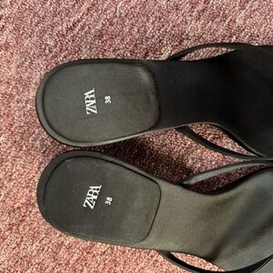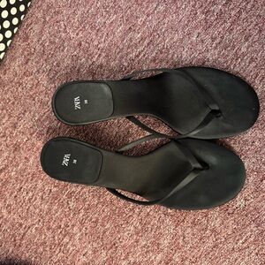 Chic black sandals from Zara. Ideal for versatile styling. Comfortable and sleek design.