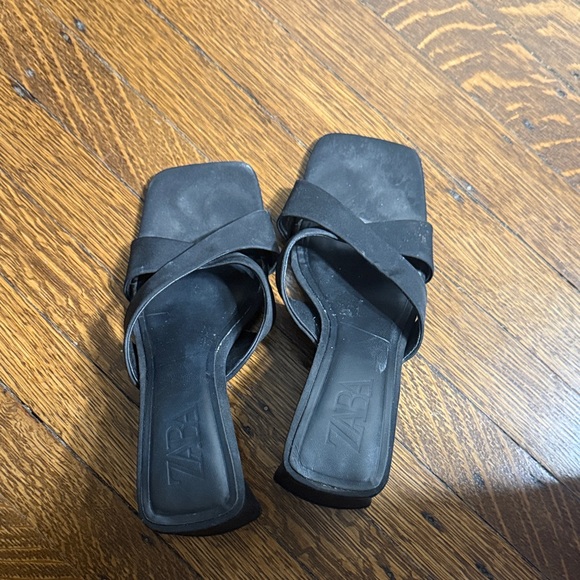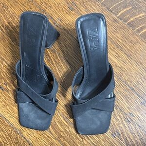 Stylish black sandals with sleek crisscross design. Perfect for any occasion.