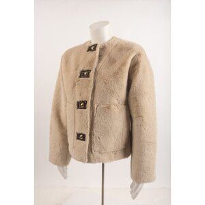 Zara Womens Faux Fur Coat Jacket XS Ecru Ivory ZW collection gold button NWOT