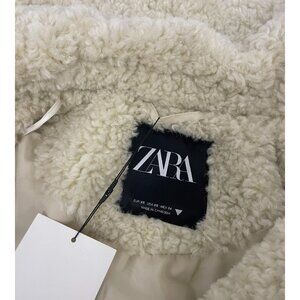 Zara Womens Faux Fur Coat Jacket XS Oyster White Teddy collared 4391/855 NWT