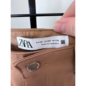 Zara Womens Faux Leather Tan Pants Straight Leg