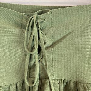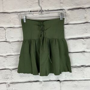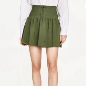 Zara Women's Flare Knit Skirt S Green Lace-Up Corset High Waisted Casual