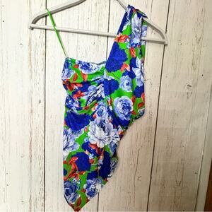 Zara Women's Floral Classy Seasonal Style One Strap Ruched Side Body Suit Sz S