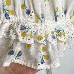 Zara Women's Floral Eyelet Crop Top Sz M Ruffle Smocking Cottagecore Prairie