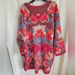 Zara Women's Floral Jacquard Knit Tunic Sweater Long Sleeve Side Slit Small