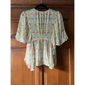 Zara Women’s Floral Lace Up Short Sleeve Blouse Smocked Back Multicolor Size S