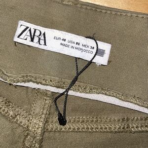 Zara Womens Frayed High Waist Side Zip Wide Leg Pants Olive Green Size 8