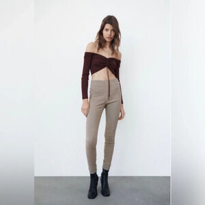 TAGS: zara, womens, trousers, fitted, bodycon, stretch, gingham, plaid, checks, fall, winter, spring, holiday, autumn, work, workwear, preppy, minimalist