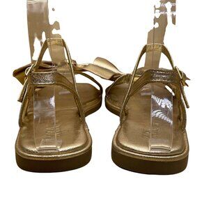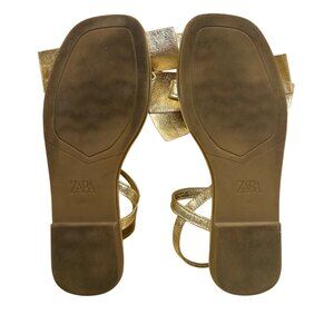 Zara Women’s Gold Metallic Adjustable Strap Bow Flat Sandals Size 6.5US