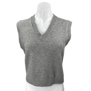 Zara Women's Gray Wool Knit V-neck Sleeveless Pullover Crop Sweater Vest Top M