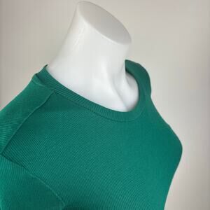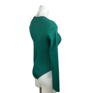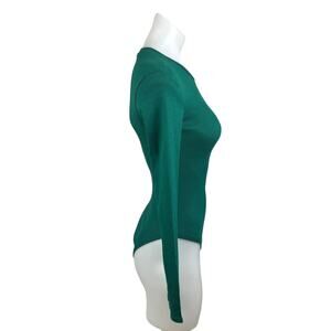 Zara Women's Green Crew Neck Long Sleeve Ribbed knit Plain Rib Solid Stretch Fitted Brief Bodysuit Top Size S