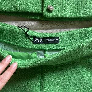 Elevate your style with this chic green jacket and shorts set from Zara. Perfect for any occasion, this set combines elegance with a modern twist.