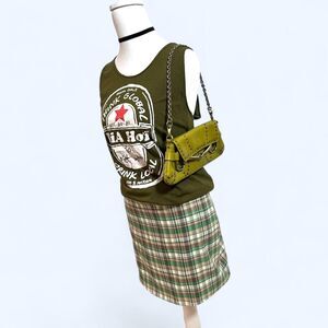 green plaid, mini skirt, back zipper, preppy style, grunge vibe, versatile, flattering fit, trendy fashion, casual wear, Y2K