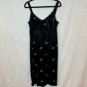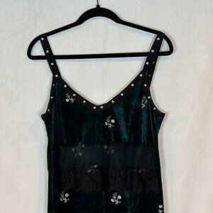 Zara Women's Green Velvet Floral Rhinestone Accent Lace Cutout Midi Dress SZ M