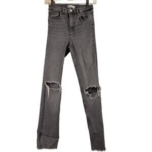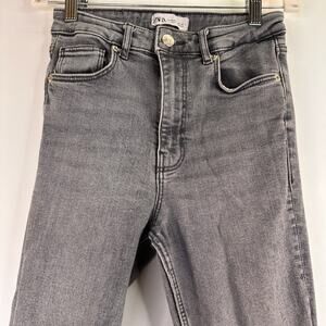 Zara Women's Grey Straight Leg Distressed High Rise Jeans Size 4