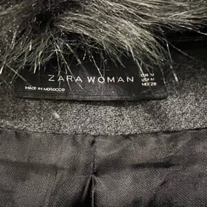 All orders ship within 1-3 business days. This women's medium length zipper coat by Zara Women is grey with a faux fur neckline. 68% wool, 24% polyamide and 4% acryllic. Condition is excellent. Size M. Make me an offer!