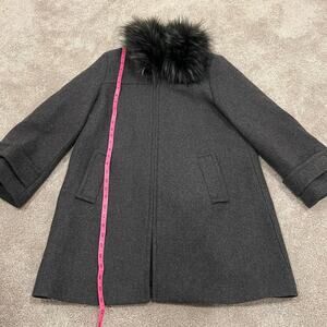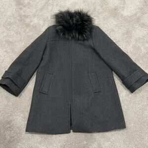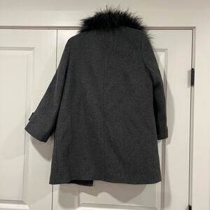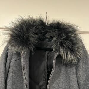 Zara Women's Grey Wool Jacket with Zipper and Faux Fur Collar Size M
