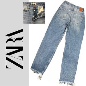Zara Women’s High Rise Button Fly Light Washed Distressed Denim Jeans