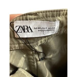 Zara Women's High Rise Green Canvas Cargo Straight Leg Pants Size 6