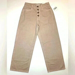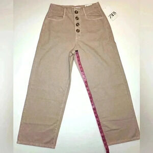 Zara Womens High Waist Exposed Button Culotte Jeans Pastel Pink Size 6