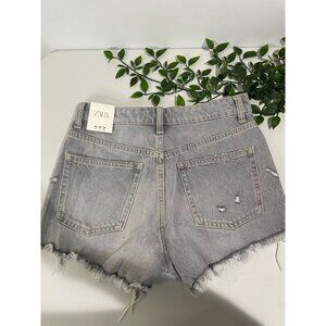 Zara Womens High-Rise Distressed Denim Shorts Size 36 EU / 4 US Light Gray