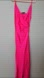 Stunning fuchsia satin slip dress with a draped neckline. Ideal for special occasions.