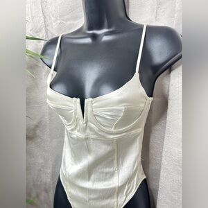 Zara Women’s Ivory Satin Underwired Bodysuit Top Sz Small