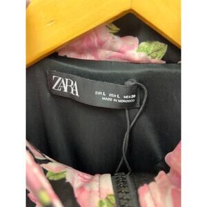 Zara Womens Jacket Full Zip Up Roses Flower Print Elastic Waist Jacket Size L