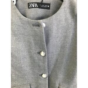 Zara Womens Jacket L Gray Metal Button Blazer Shoulder Pads Lined 3046/255 NWT