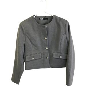 Zara Womens Jacket Blazer L Gray Metal Button Shoulder Pads Lined 3046/255 NWT