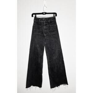 Zara Women's Jeans The Patch Pockets Marine Straight Wide High Waist Retro Crop