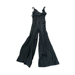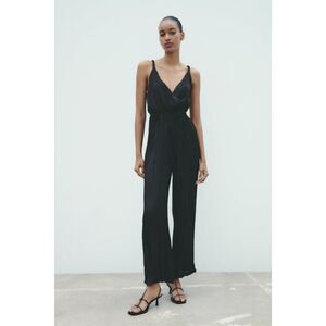 Zara Womens Jumpsuit Wrinkled Satin effect XS Black Pleated V Neck 9878/159 NWD