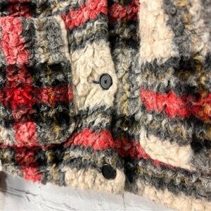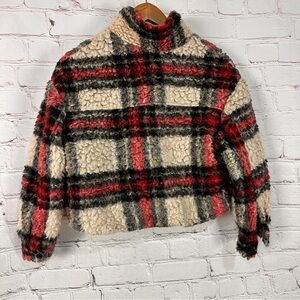 Zara Women's Juniors Red Plaid Jacket shacket cropped size 13-14 Sherpa tan